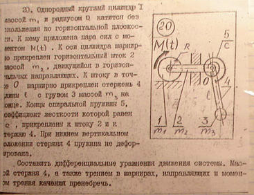 ДЗ 3: Уравнения Лагранжа 2-го рода вариант 20