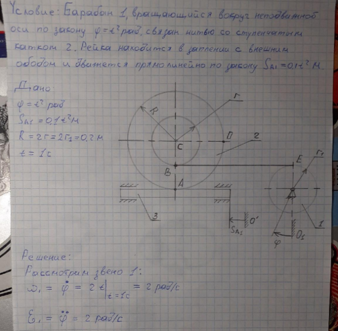 Типовой расчет по теоретической механике, "Кинематика плоского движения твердого тела", зачтено