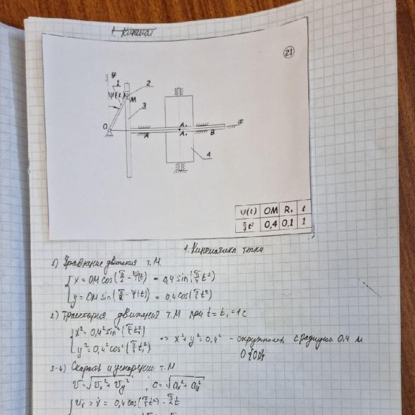 ДЗ 1: Кинематика точки и простейших движений твердого тела вариант 21