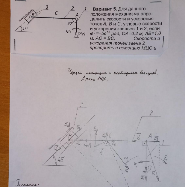 Типовой расчет по теоретической механике, "Кинематика плоского движения твердого тела", зачтено