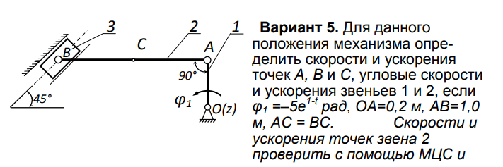ДЗ 2: Кинематика плоского движения твердого тела вариант 5