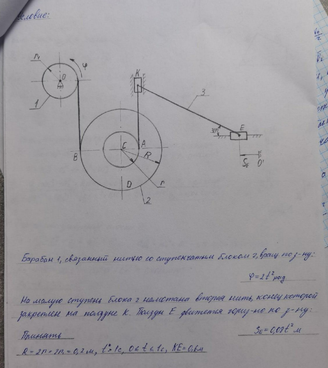 Типовой расчет по теоретической механике, "Кинематика плоского движения твердого тела", зачтено