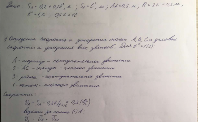 Типовой расчет по теоретической механике, "Кинематика плоского движения твердого тела", зачтено