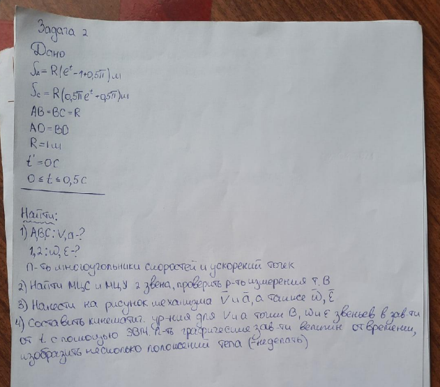Типовой расчет по теоретической механике, "Кинематика плоского движения твердого тела", зачтено