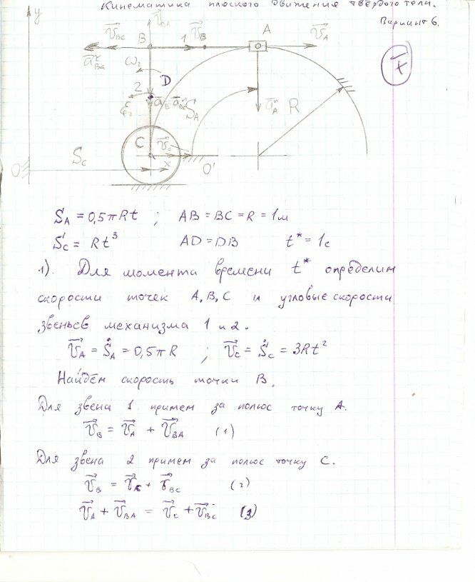 ДЗ 2: Кинематика плоского движения твердого тела вариант 6
