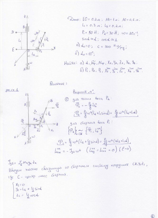 2022г Вариант 7 - ДЗ №1 - Динамические реакции подшипников