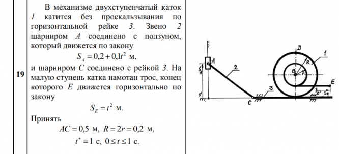 ДЗ 2: Кинематика плоского движения твердого тела вариант 19