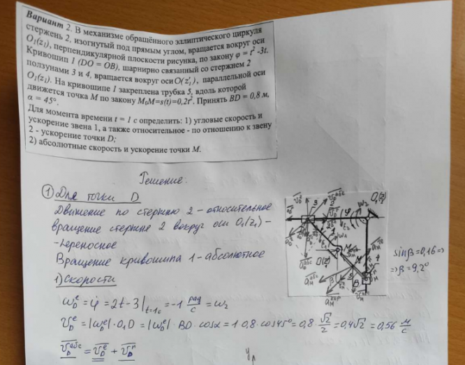 ДЗ 3: Кинематика сложного движения точки вариант 2