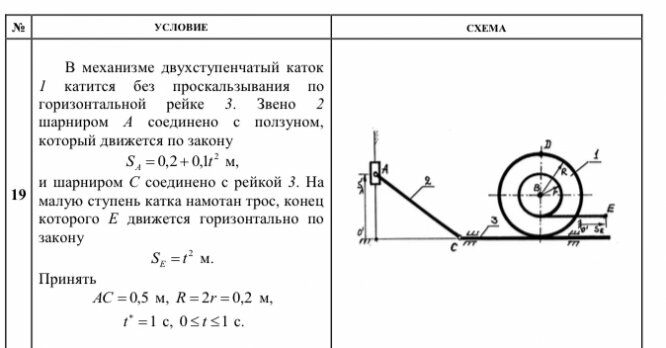 ДЗ 2: Кинематика плоского движения твердого тела вариант 19