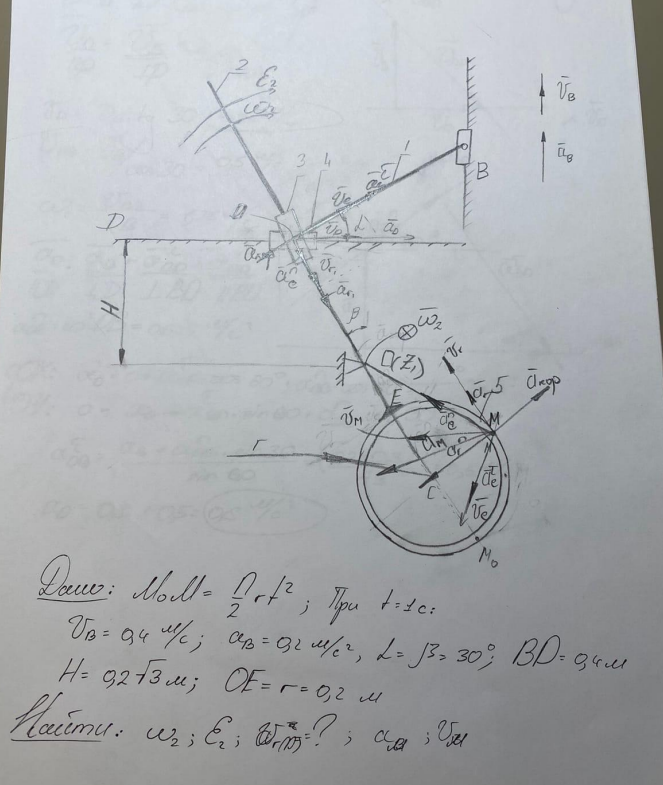 Типовой расчет по теоретической механике, "Кинематика сложного движения точки", зачтено