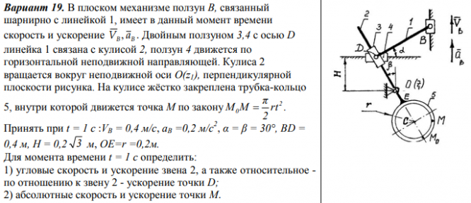 ДЗ 3: Кинематика сложного движения точки вариант 19