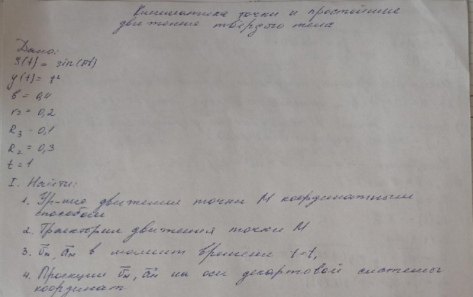 Типовой расчет по теоретической механике, "Кинематика точки и простейших движений твердого тела", 2 части, зачтено