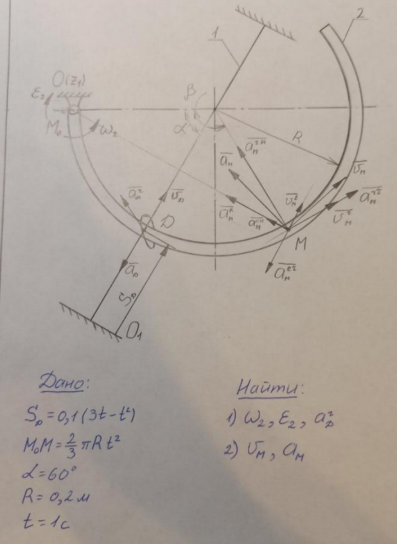 Типовой расчет по теоретической механике, "Кинематика сложного движения точки", зачтено