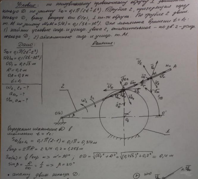Типовой расчет по теоретической механике, "Кинематика сложного движения точки", зачтено