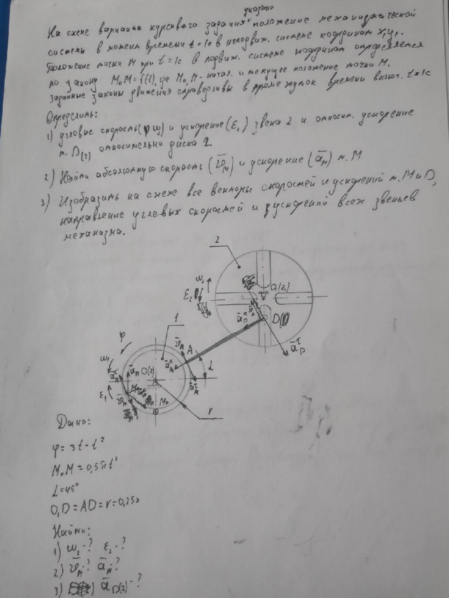 Типовой расчет по теоретической механике, "Кинематика сложного движения точки", зачтено