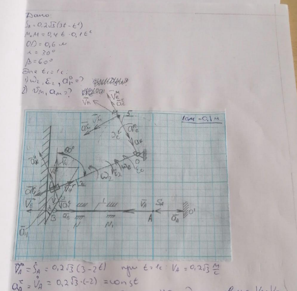 Типовой расчет по теоретической механике, "Кинематика плоского движения твердого тела", зачтено