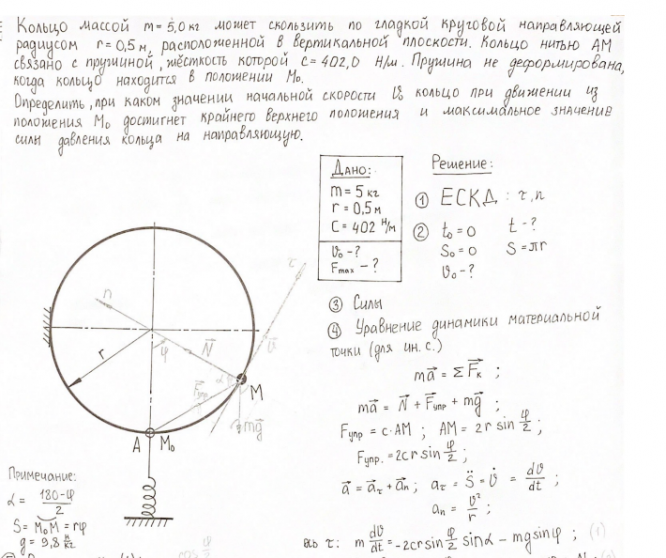 Типовой расчет по теоретической механике, "Динамика материальной точки", зачтено