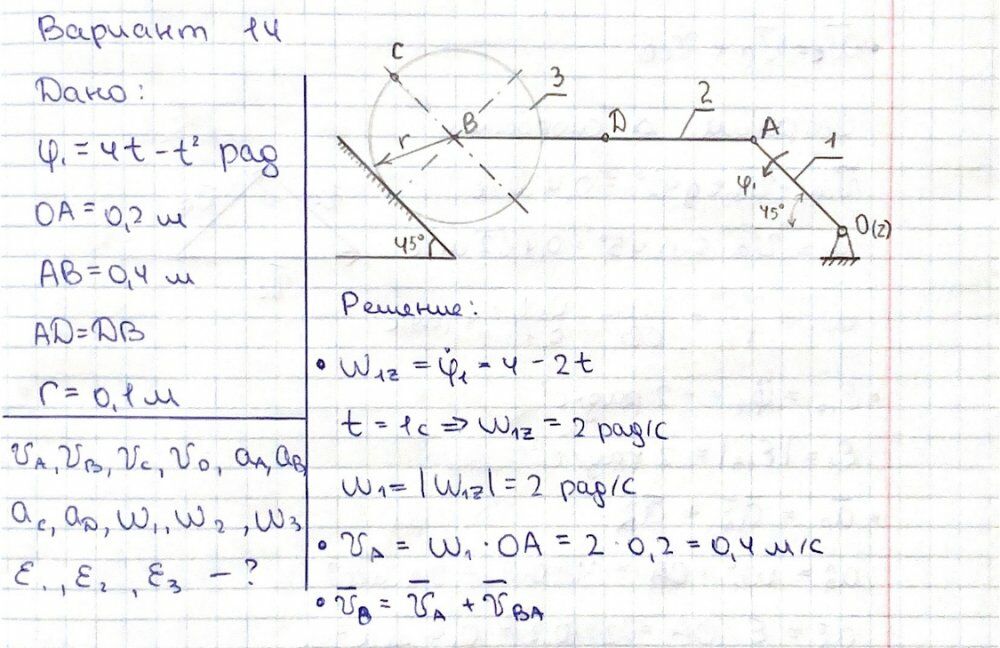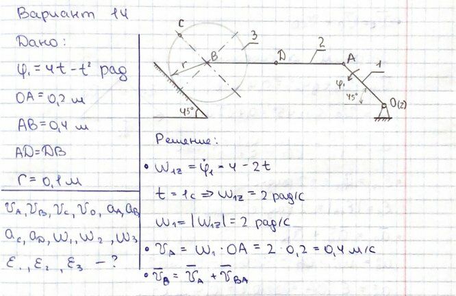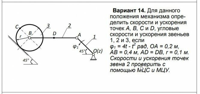 ДЗ 2: Кинематика плоского движения твердого тела вариант 14