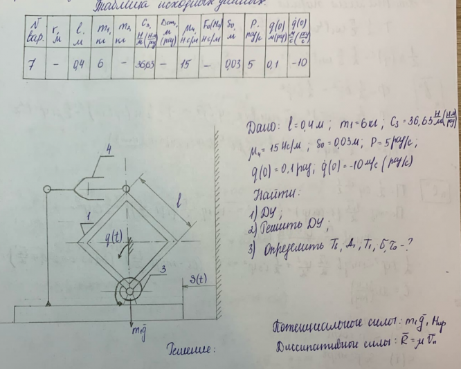 ДЗ 2: Колебания линейной системы с одной степенью свободы вариант 7