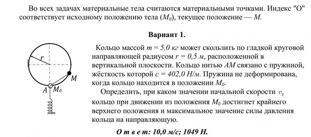 ДЗ 1: Динамика материальной точки вариант 1