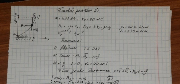Типовой расчет по теоретической механике, "Динамика материальной точки", зачтено