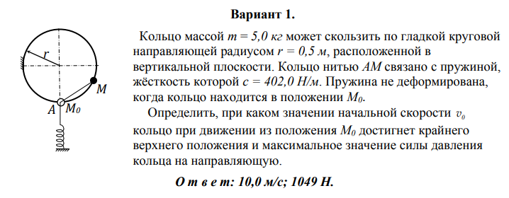 ДЗ 1: Динамика материальной точки вариант 1