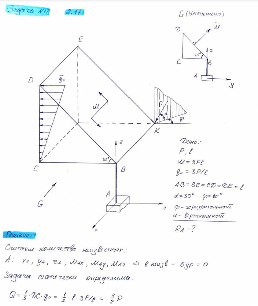 Вариант 17 - ДЗ №4 - Плоская и пространственная статика
