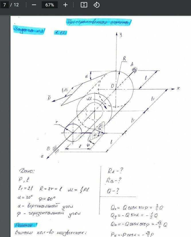 Вариант 17 - ДЗ №4 - Плоская и пространственная статика.pdf