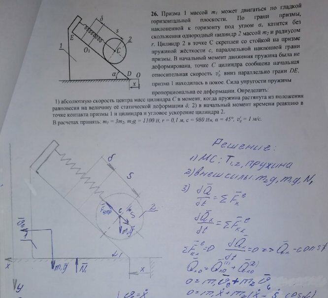 Вариант 26 - ДЗ №2 - Общие теоремы динамики (бакалавры)