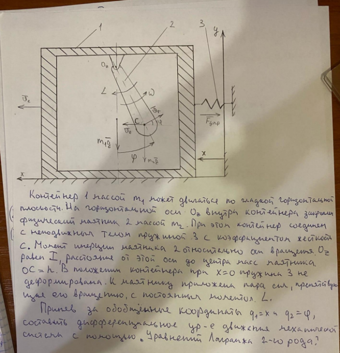 Типовой расчет по теоретической механике, "Уравнения Лагранжа 2-го рода", зачтено