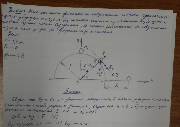 Типовой расчет по теоретической механике, "Динамика материальной точки", зачтено