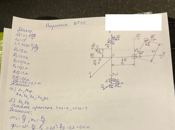 Типовой расчет по теоретической механике, "Динамические реакции подшипников", зачтено