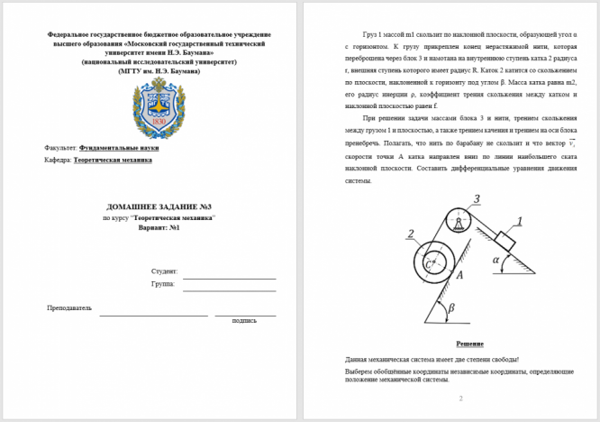 Для студентов МГТУ им. Н.Э.Баумана по предмету Теоретическая механикаУравнения Лагранжа 2-го родаУравнения Лагранжа 2-го рода