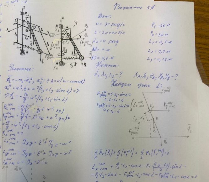Вариант 5 - ДЗ №1 - Динамические реакции подшипников