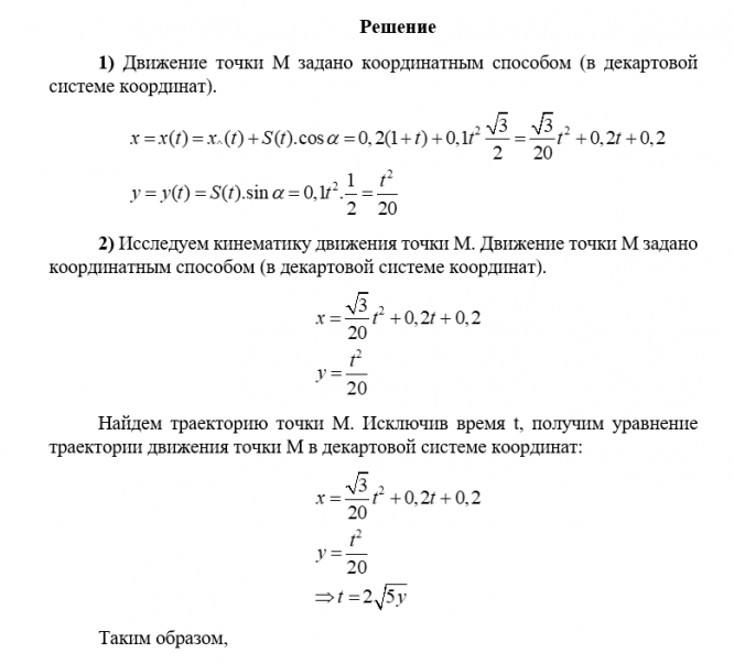 В первой части задания нужно исследовать движение точки M и определить основные характеристики этого движения.Требуется: