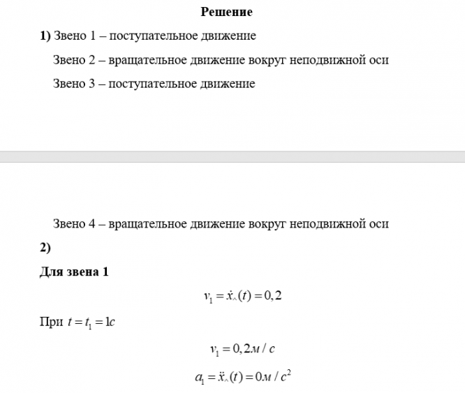 2) определить угловые скорости и угловые ускорения звеньев механизма, совершающих вращательное движение, указав на чертеже круговыми стрелками их направления, определить характер движения тел (замедленный или ускоренный);