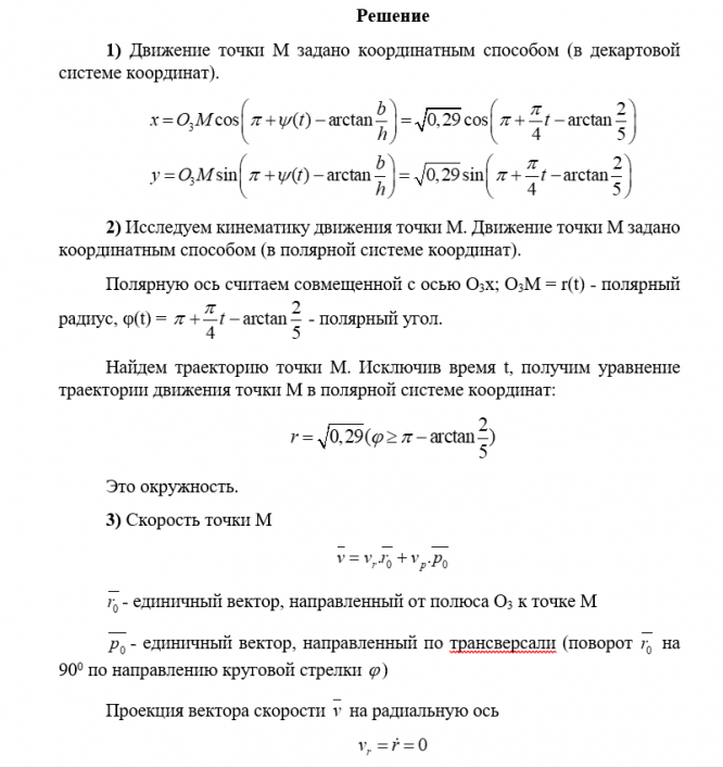 В первой части задания нужно исследовать движение точки M и определить основные характеристики этого движения.Требуется: