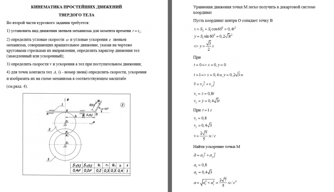 Задание состоит из двух частей: 1) кинематика точки; 2) простейшие движения твердого тела.