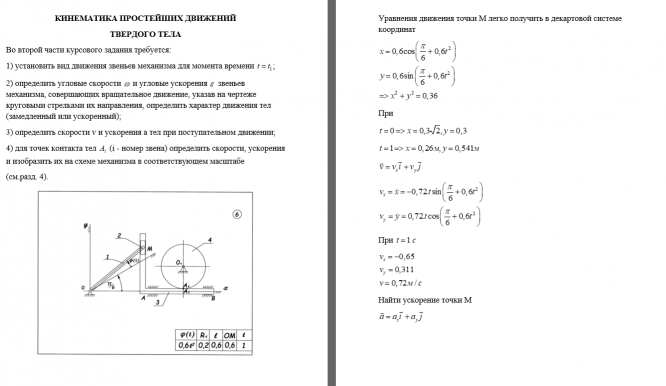 Задание состоит из двух частей: 1) кинематика точки; 2) простейшие движения твердого тела.