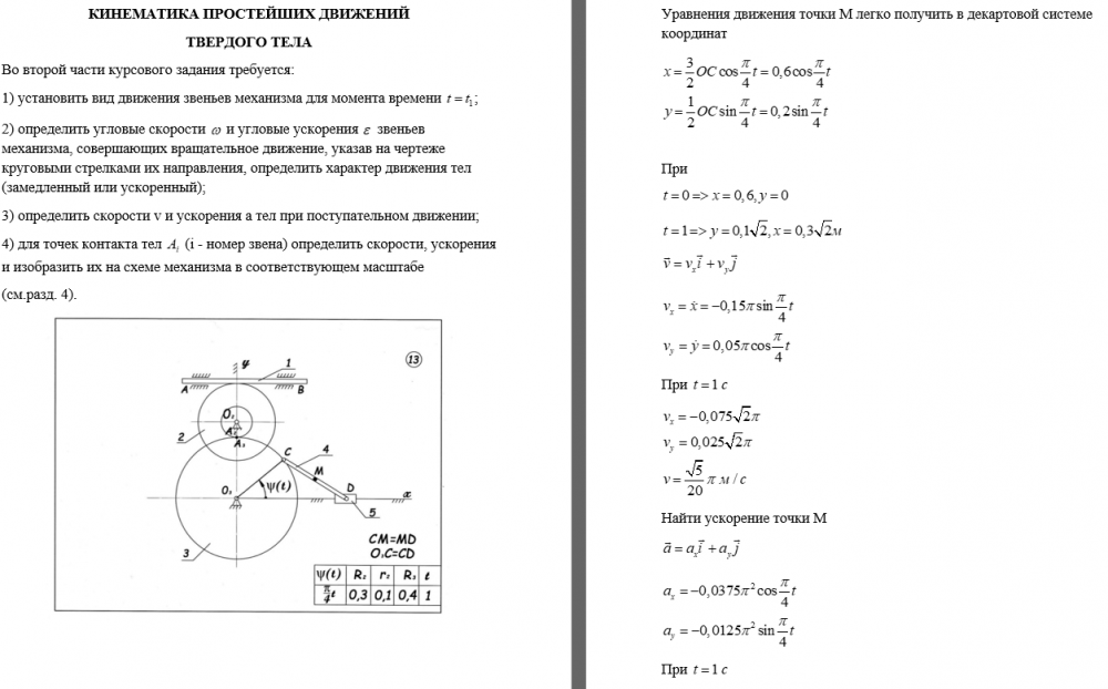 Задание состоит из двух частей: 1) кинематика точки; 2) простейшие движения твердого тела.