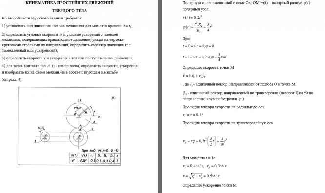 Задание состоит из двух частей: 1) кинематика точки; 2) простейшие движения твердого тела.