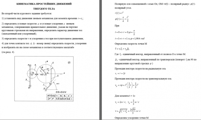 Задание состоит из двух частей: 1) кинематика точки; 2) простейшие движения твердого тела.