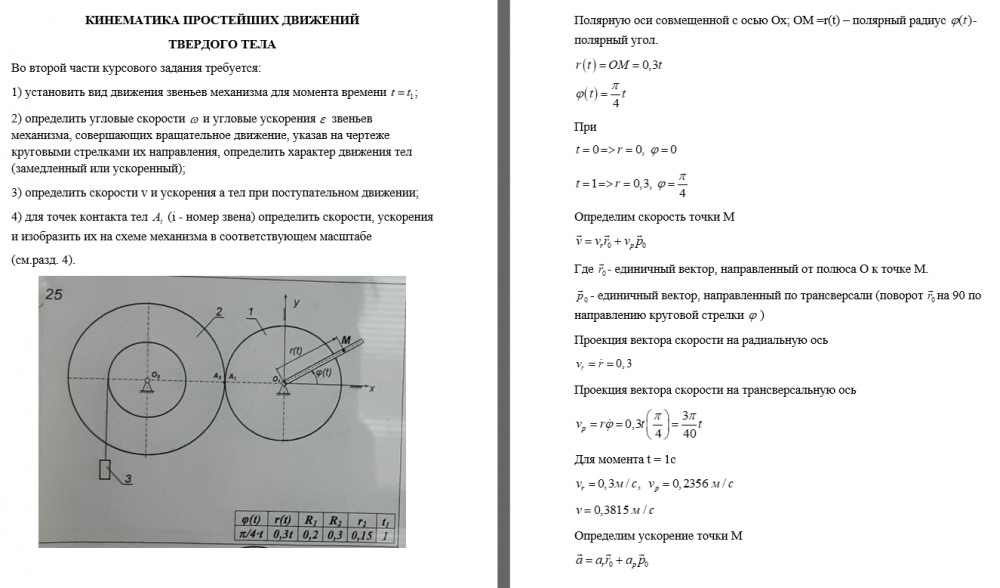 ДЗ 1: Кинематика точки и простейших движений твердого тела вариант 25