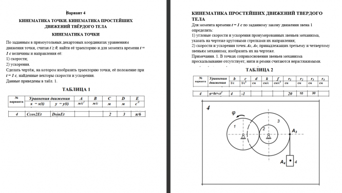 ДЗ 1: Кинематика точки и простейших движений твердого тела вариант 4