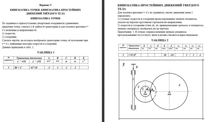 ДЗ 1: Кинематика точки и простейших движений твердого тела вариант 5