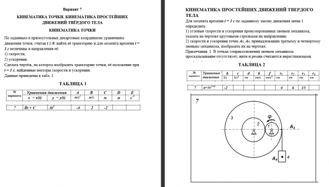 ДЗ 1: Кинематика точки и простейших движений твердого тела вариант 7