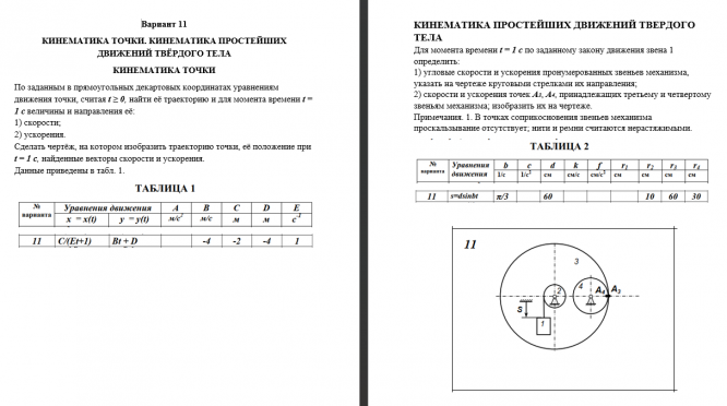 ДЗ 1: Кинематика точки и простейших движений твердого тела вариант 11