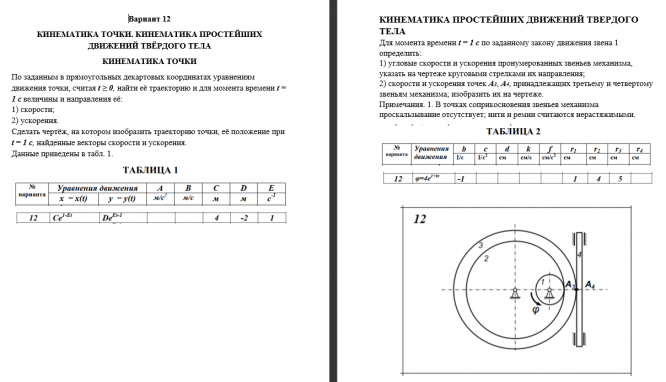 ДЗ 1: Кинематика точки и простейших движений твердого тела вариант 12