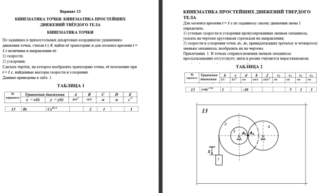 ДЗ 1: Кинематика точки и простейших движений твердого тела вариант 13