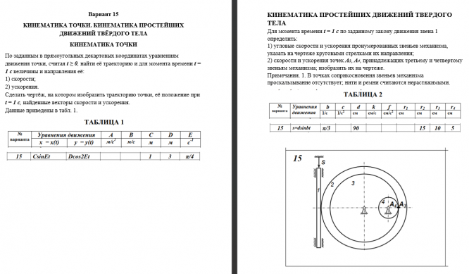 ДЗ 1: Кинематика точки и простейших движений твердого тела вариант 15